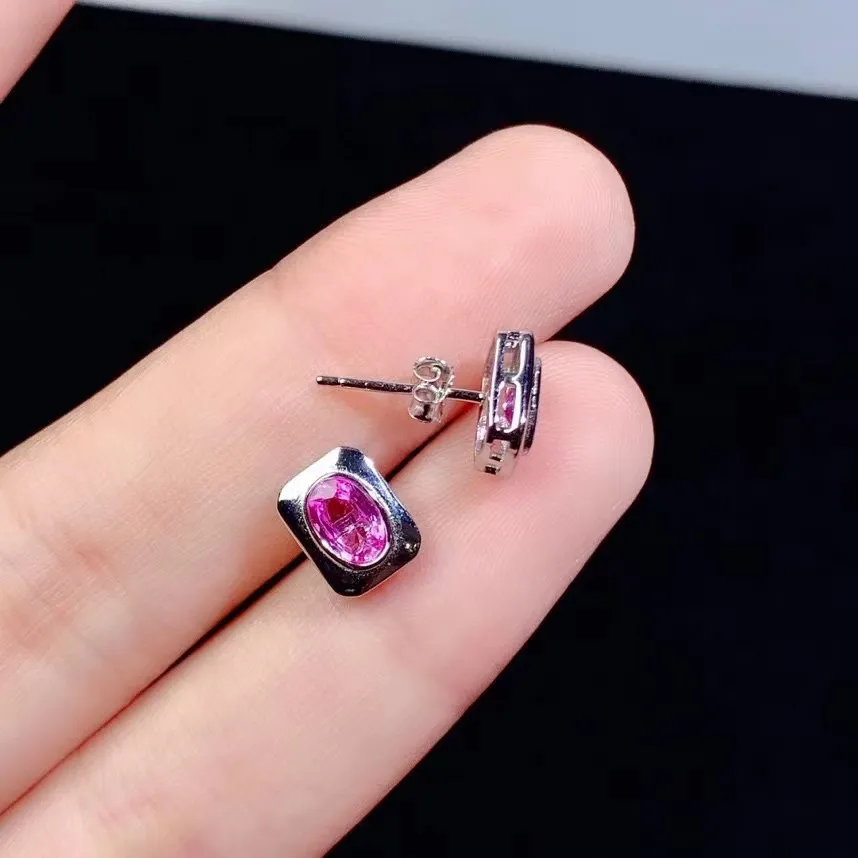 925 Silver Inlaid Natural Sapphire Stud Earrings