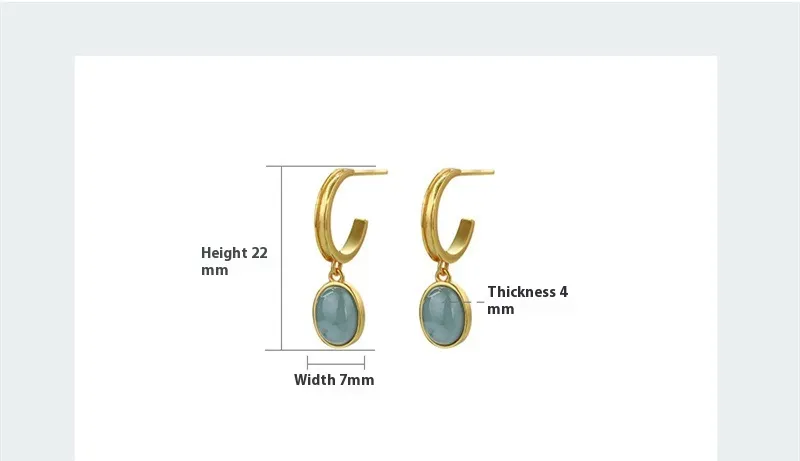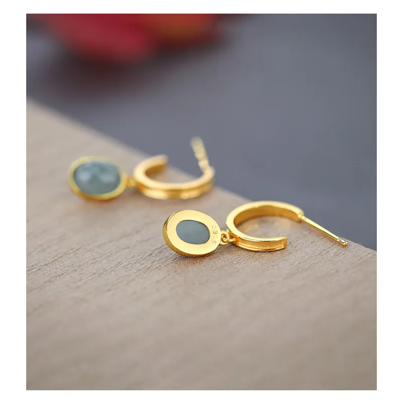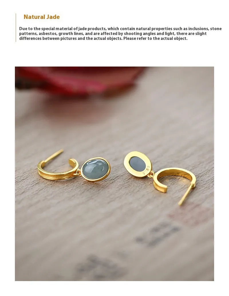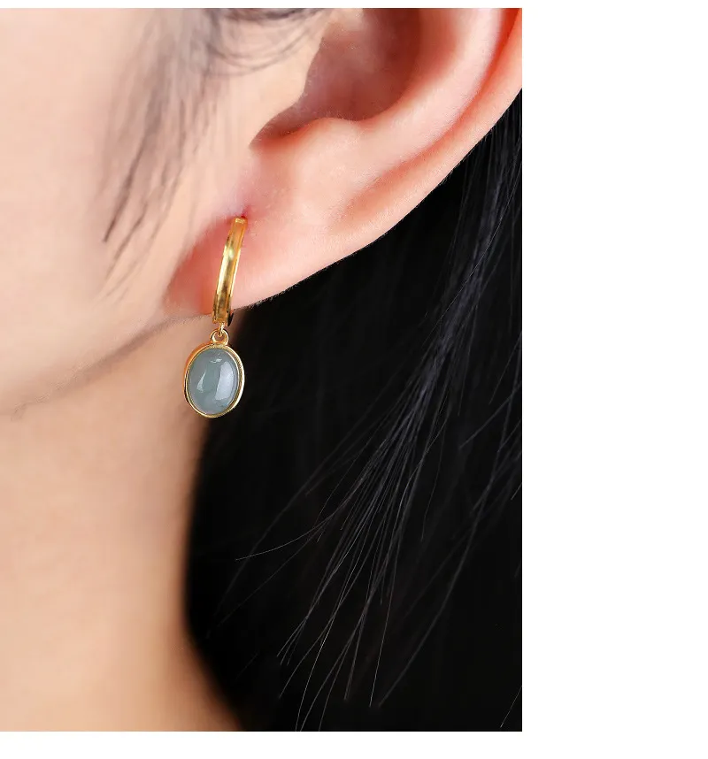 925 Silver Natural A Cargo Blue Water Jade Egg Surface Earrings