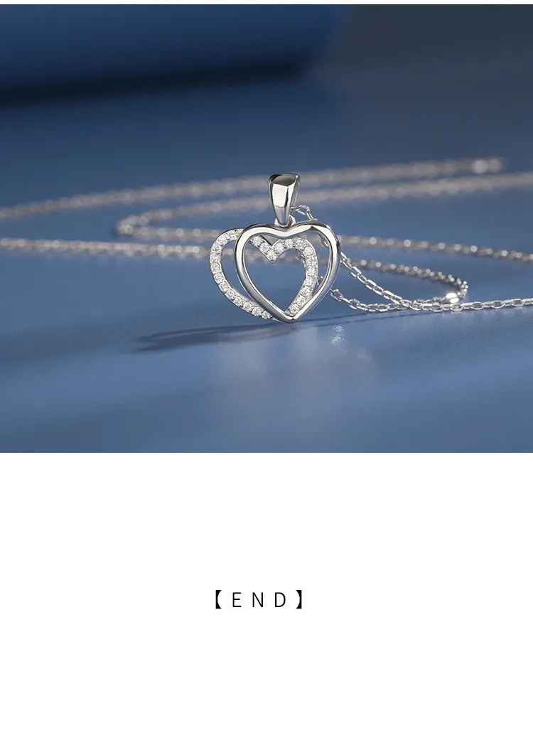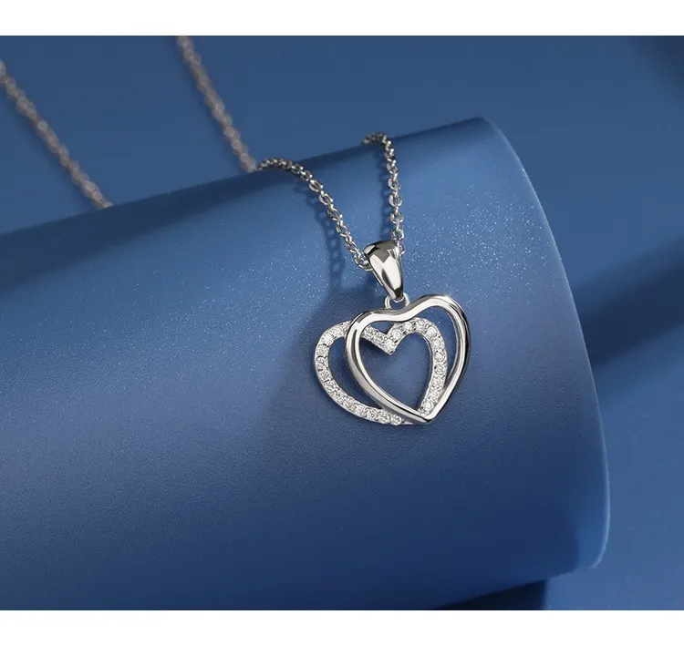 925 Sterling Silver Double Heart-shaped Necklace For Women Summer