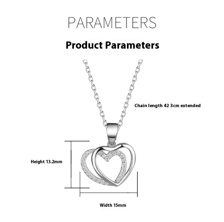 Color: double heart-shaped white gold color with chain
