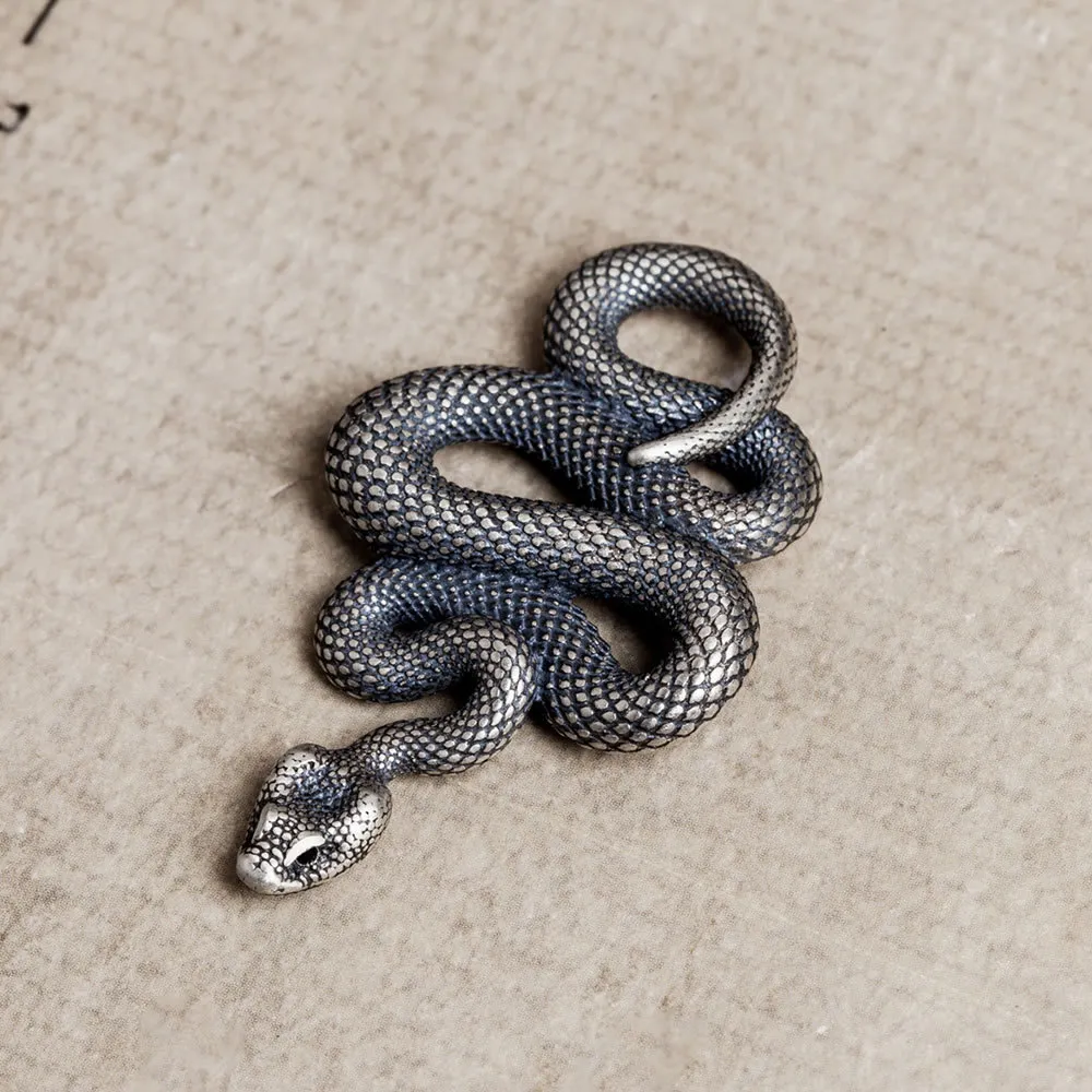 The snake pendant is beautifully crafted with a distressed, vintage-inspired finish. This retro design gives the pendant a unique, worn-in look that adds character to your accessory collection. It’s the perfect choice for those who appreciate unique, timeless style with a touch of rebellious flair.