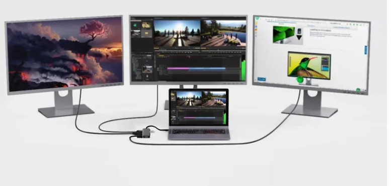 Beyond video outputs, the 9-in-1 hub includes a Gigabit Ethernet port, ensuring fast and stable internet connectivity, perfect for remote work, gaming, or streaming. Additional USB-A and USB-C ports offer support for peripheral devices such as keyboards, mice, and external drives, while an SD/TF card reader allows quick access to your memory cards. The compact and portable design makes it easy to carry this hub wherever you go, ensuring you always have the connectivity you need, whether you're at the office, working from home, or on the go.