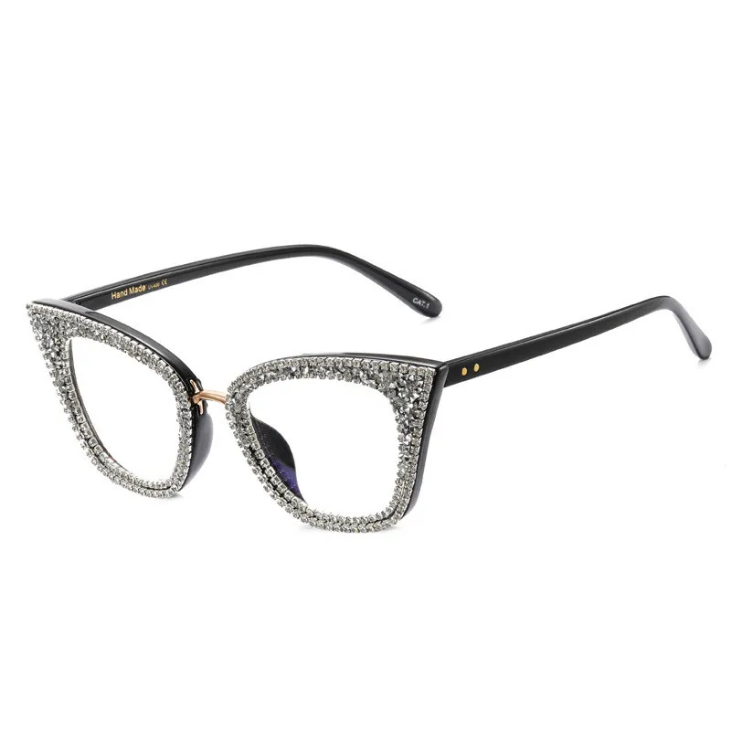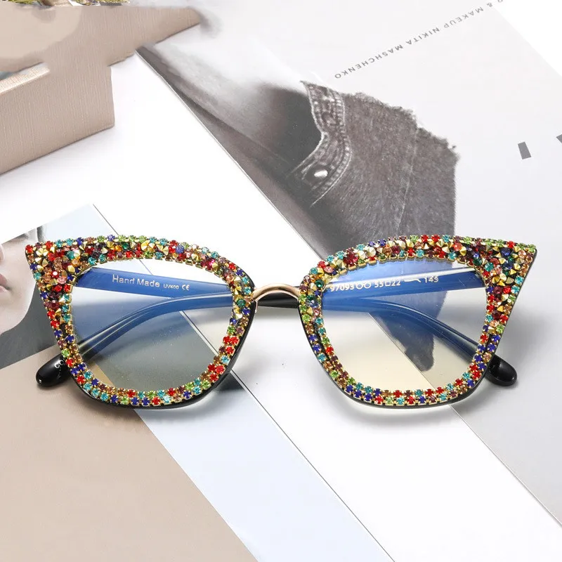 A97093 New Fashion Cat Eye Anti Blue Light Glasses Full Rim Frame Optical Glasses Trendy Spot Drill Plain Glasses Women
