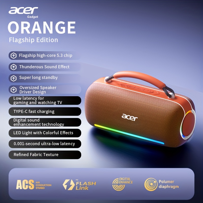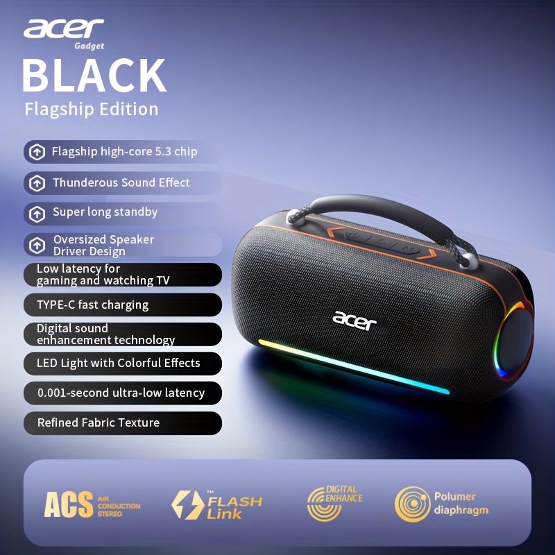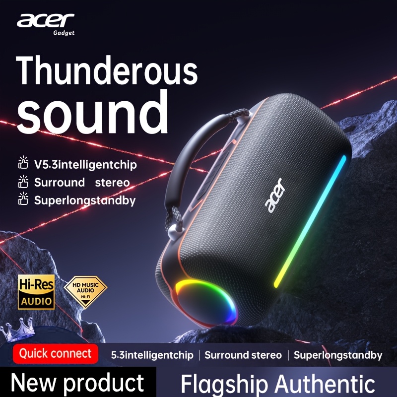 The Acer Portable Bluetooth Speaker is engineered to deliver a thunderous sound effect, combining surround stereo audio, a Bluetooth 5.3 intelligent chip, and long standby performance in a compact, carry-anywhere design. Built for everyday listening and on-the-go entertainment, this speaker brings bold sound, modern styling, and dependable connectivity together in one certified authentic Acer gadget.