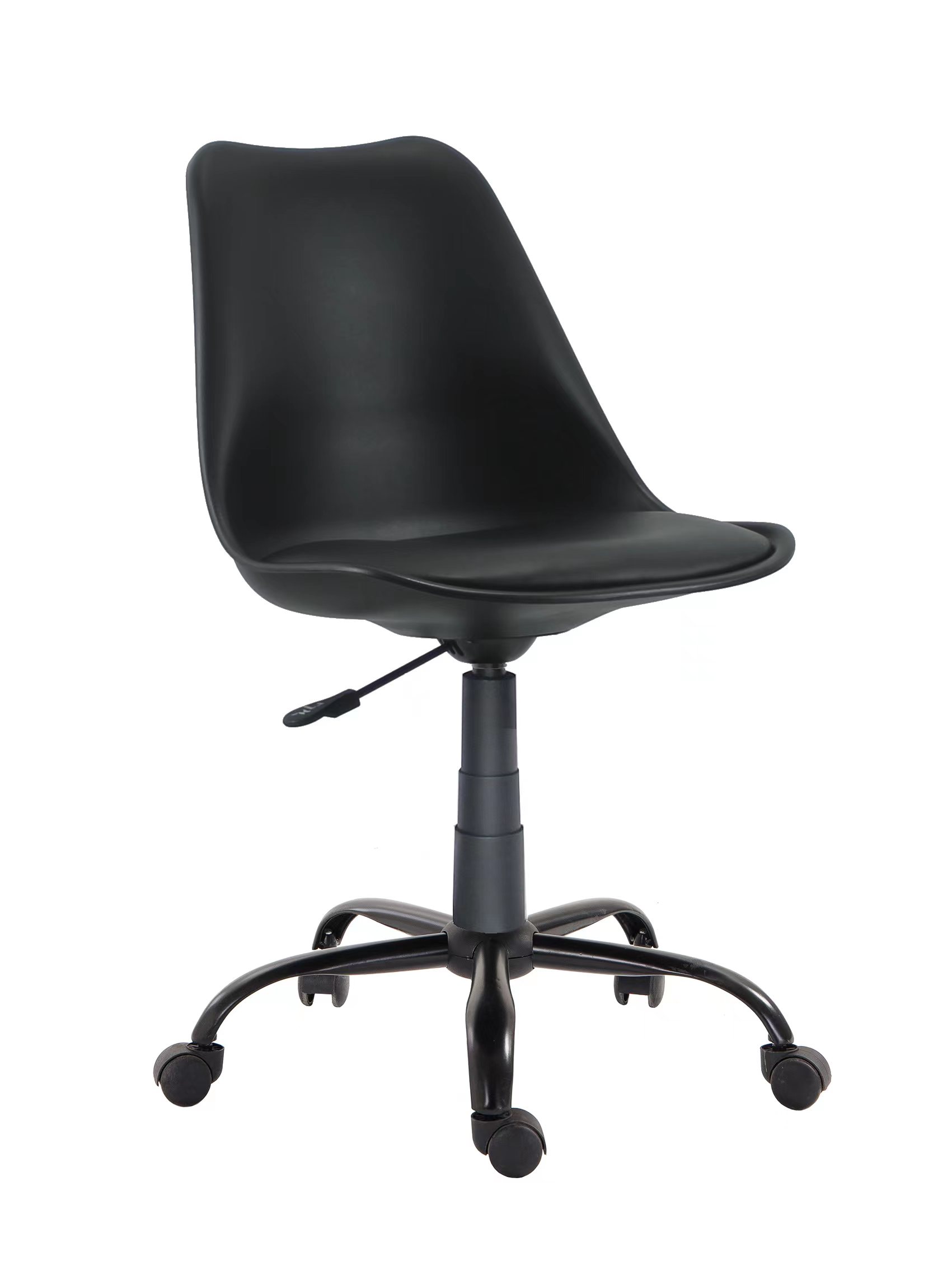 This black office chair features a sleek and minimalist design that complements any modern workspace. The black seat and