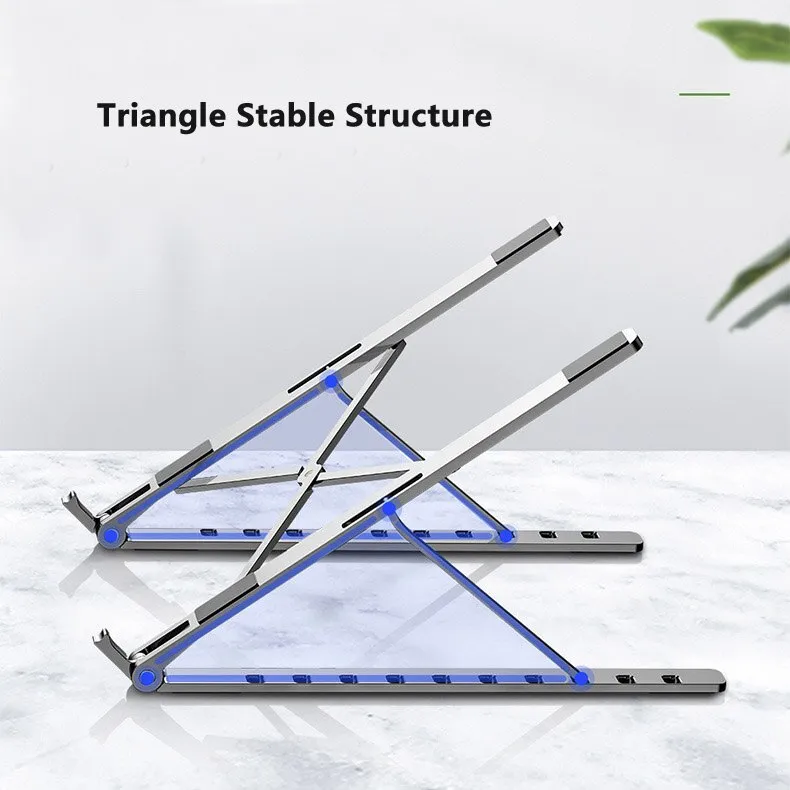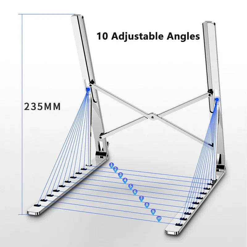 Ultra-thin foldable laptop stand, the ergonomic elevation angle protects the user's cervical spine and eye health. Aluminum alloy is