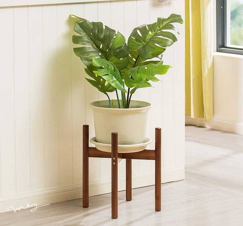 durable bamboo wood, this plant stand combines functionality and style, offering a versatile way to elevate the look of your indoor plants.
