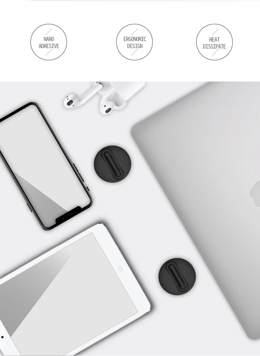 device, maintaining a clean and minimalist look. It adds elevation without the extra weight or visual clutter.