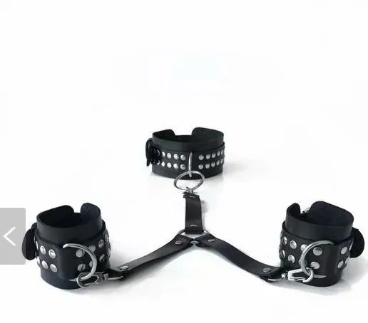 Adult products leather backhand neckcuffs