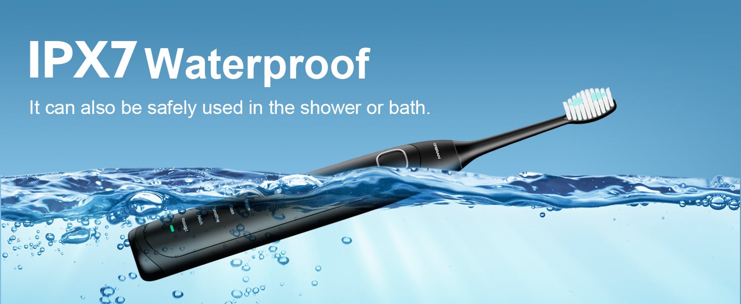- 2-Mins Timer and IPX7 Waterproof - Built-in smart timer control, 30-second intervals reminding you to move to the next quadrant of your mouth, and total in 2 minutes, 4 quadrants. The reminder function ensures a scientifically recommended brushing time. IPX7 waterproof design Feel free to use your electric toothbrush safely in the shower or bath.