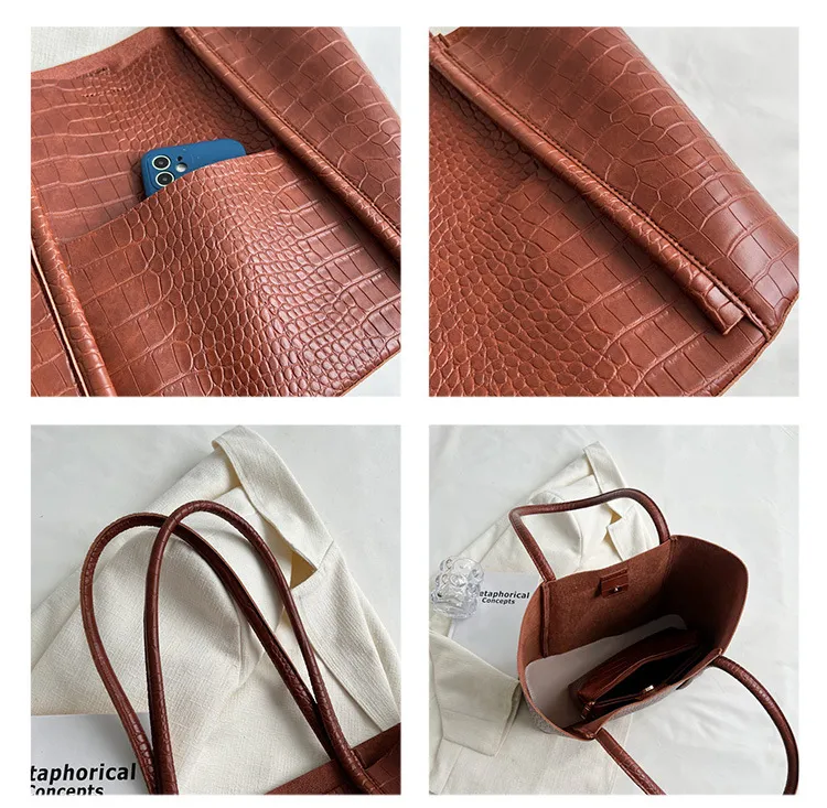 Advanced Texture Shoulder Soft Leather Western Style Commuter Tote Large Capacity Combination Bags