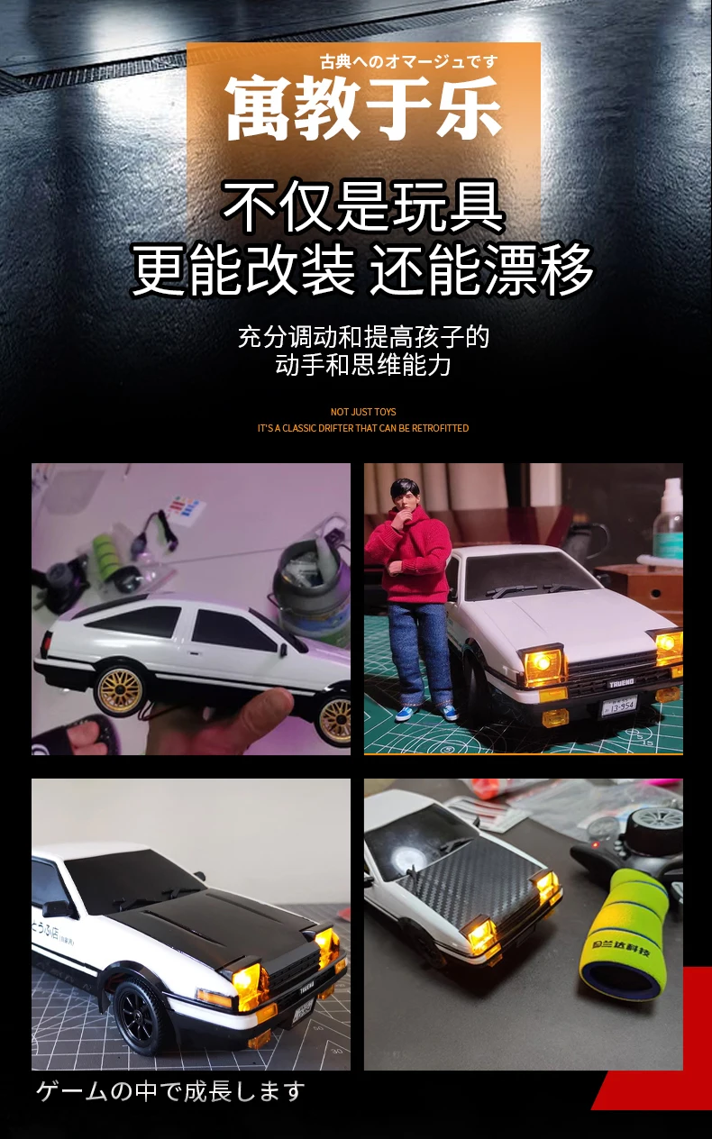 Boutique drift, multi -link design. Style 1:18 Restore the original car, and the appearance is completed in the actual proportion. Metal transmission shaft, customized 150 high -speed customization, drift tires, headlights can remotely control the third channel to control the flip light, with 9g steering servo, sustainable power consumption for 30 minutes, full -proportion linear control throttle and steering, tire motor belt block protection protection , The battery circuit board is overcharged, overdose, low-voltage protection, automatic frequency, remote control distance of 30-50 meters.