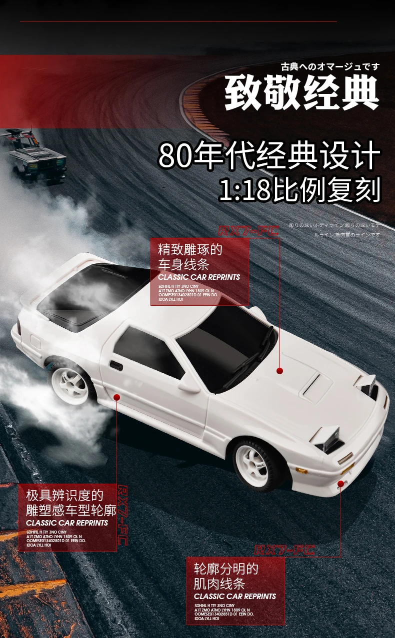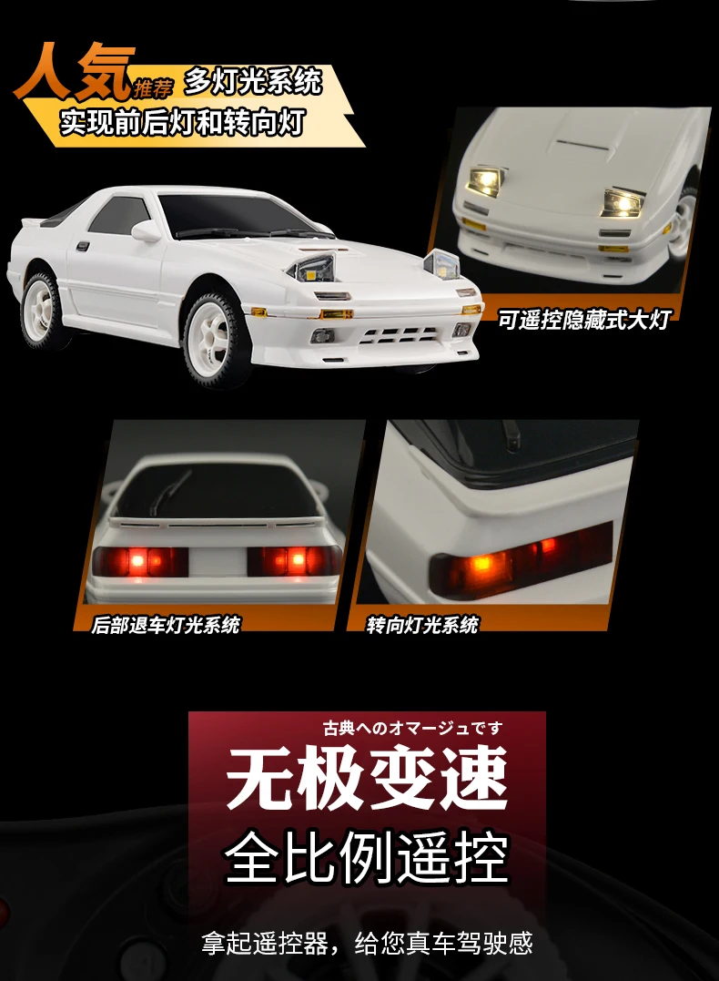 AE86 Model RX-7 FC 1:18 RC Drift Car - 2.4G Remote Control with ESP Gyroscope and LED