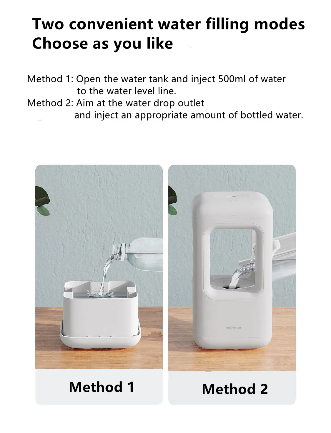 Noise Humidifier】Note: Turn on the humidifier and wait for 2 minutes (working with noise is normal in 2 minutes) before mist comes out