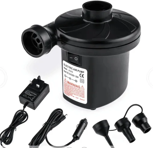 Multiple Nozzle Attachments: Comes with various nozzle adapters for different inflatables, ensuring versatility in your