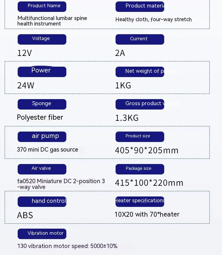 - Comprehensive Therapy: Combines airbag traction, red light therapy, hot compress, automatic timing, and pulse massage to provide full lumbar support and pain relief.