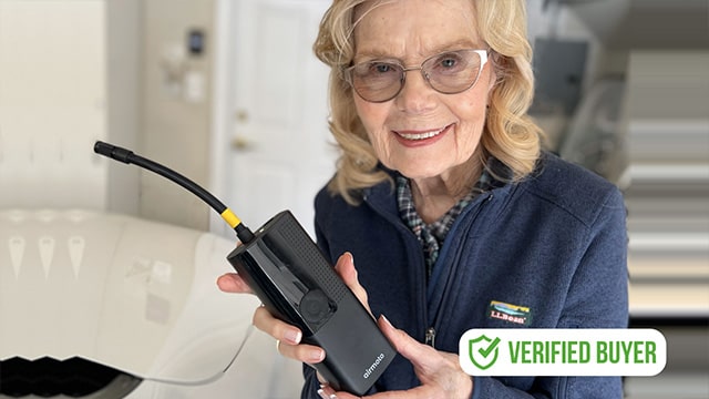 "I love how compact and powerful this air pump is. It’s always in my car, and the LED light is super helpful when inflating tires at