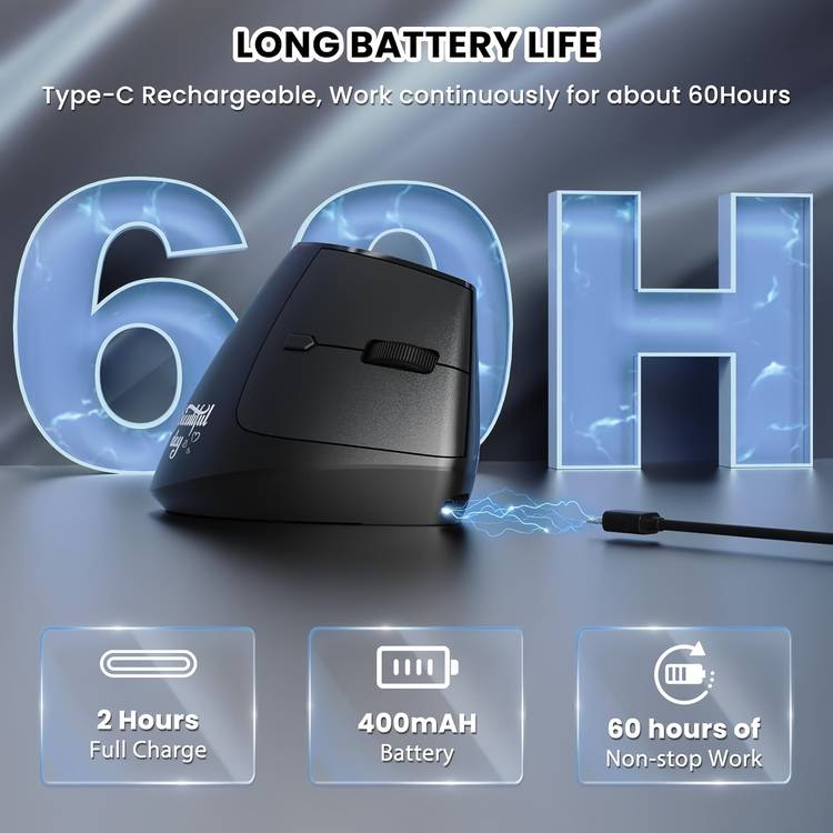 Ergonomic Vertical Design: Promotes a more natural hand position to reduce wrist strain, making it ideal for long periods