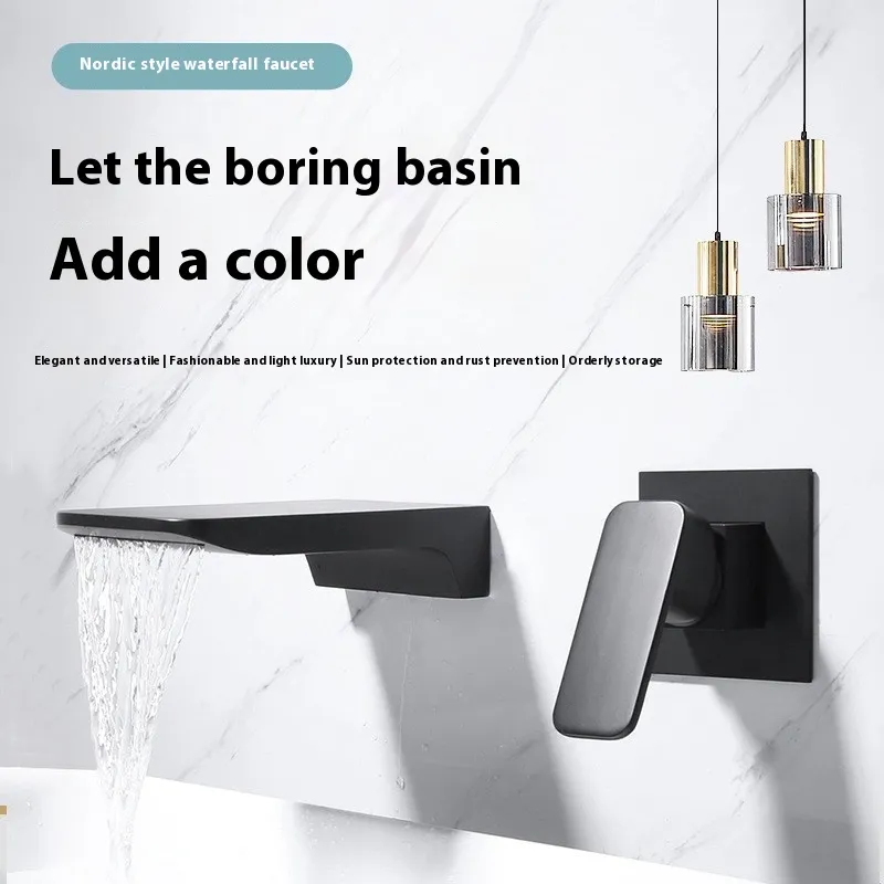 All Copper Nordic Hot And Cold Water Waterfall Concealed Wall Basin Faucet