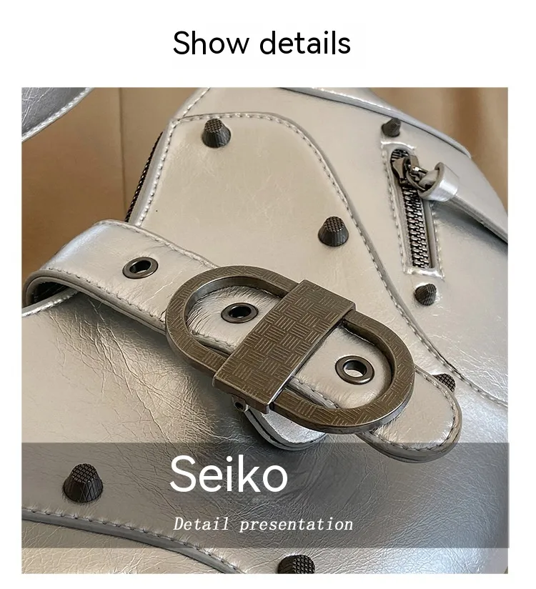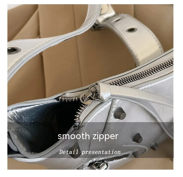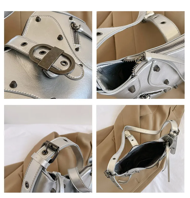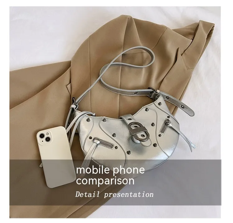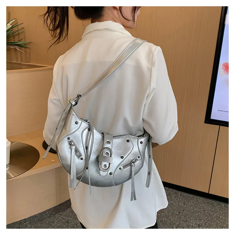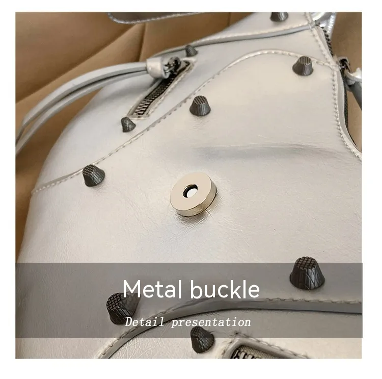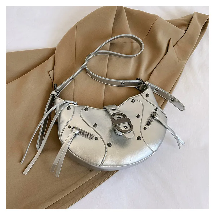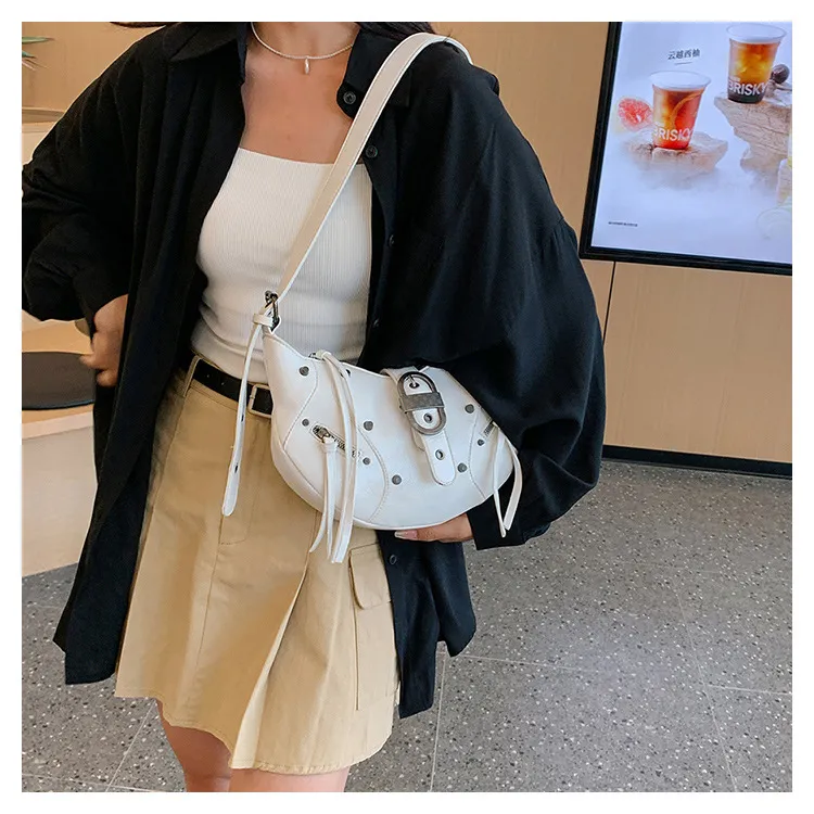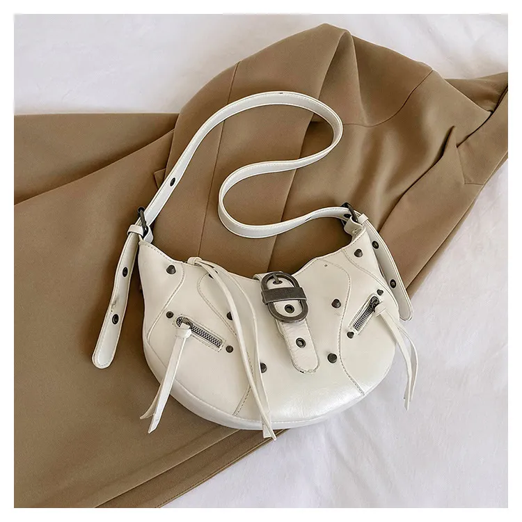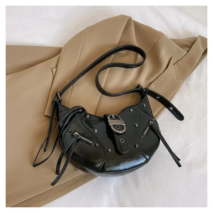 All-match Crescent Dumpling Leisure Commute French Rivet Motorcycle Bag