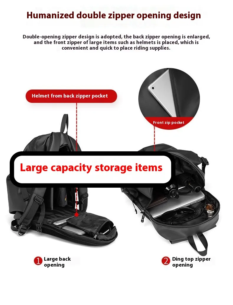 The All-Terrain Waterproof Riding Backpack with Large Capacity and Helmet Holder is the ultimate companion for riders and outdoor enthusiasts. Combining rugged durability, innovative features, and stylish design, this backpack stands out as a versatile and reliable choice. From ensuring your essentials are protected against the elements to offering convenience with its helmet holder, this backpack has it all.