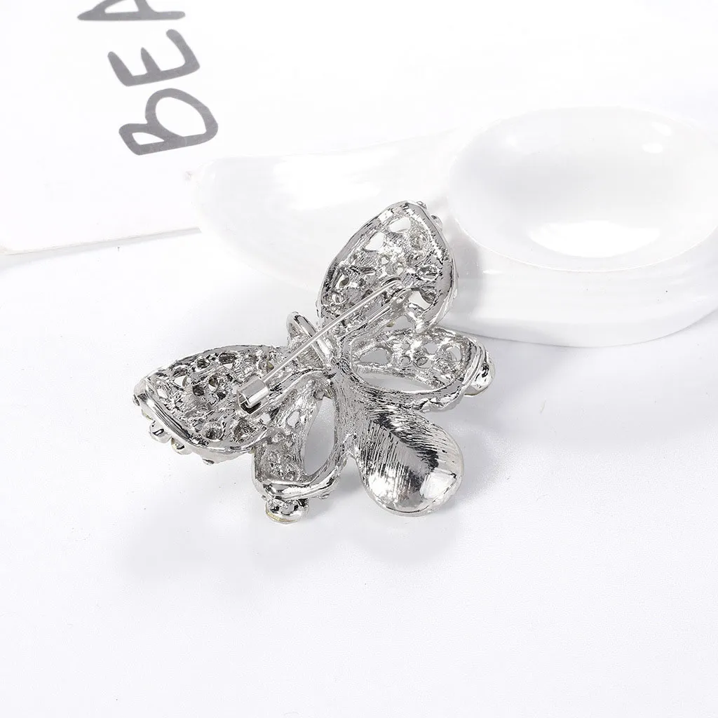 Alloy Inlaid White Rhinestone Bow Brooch