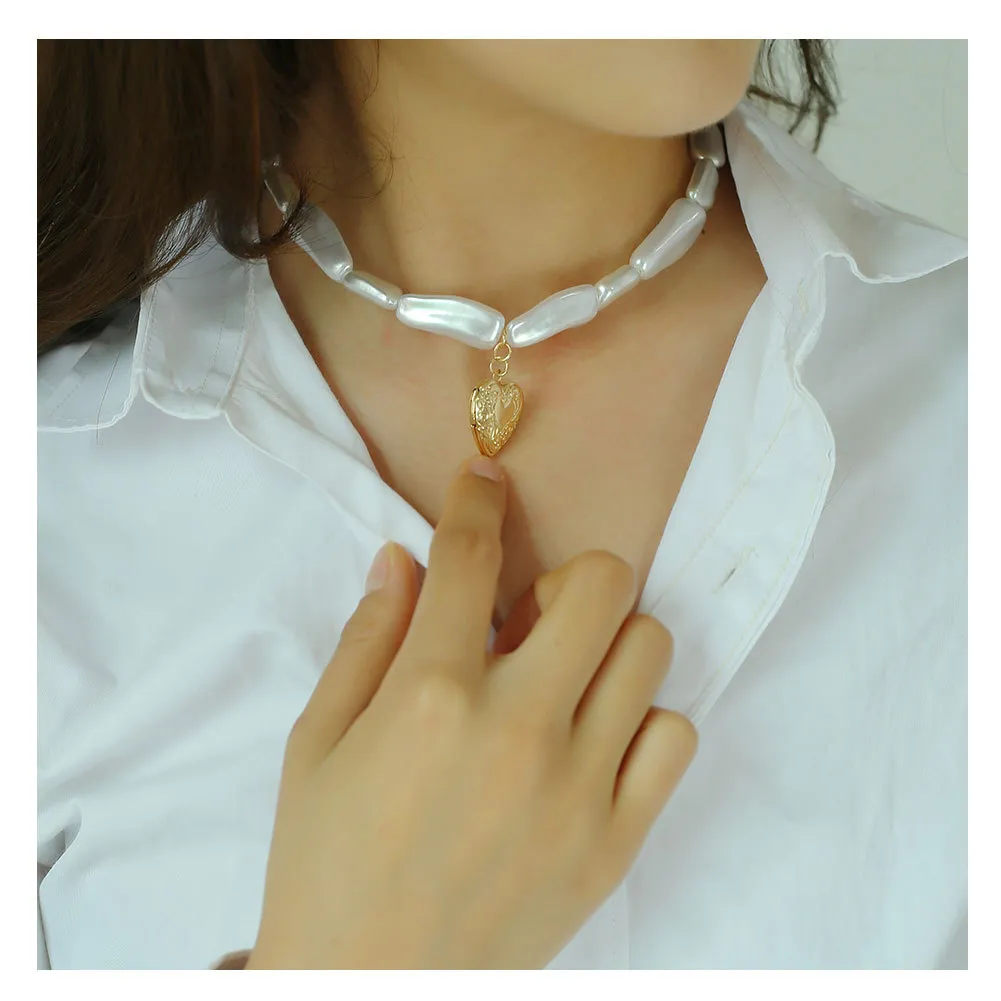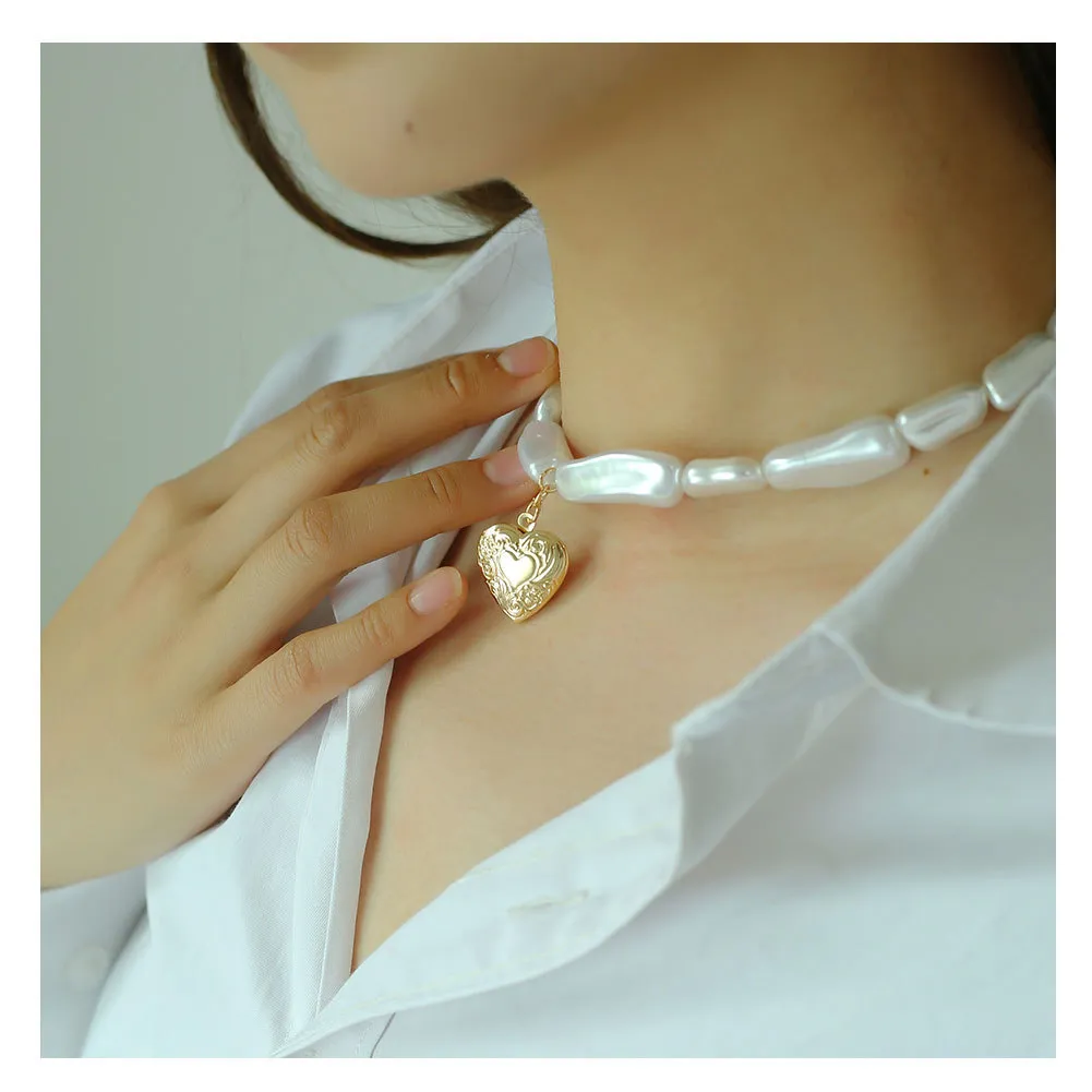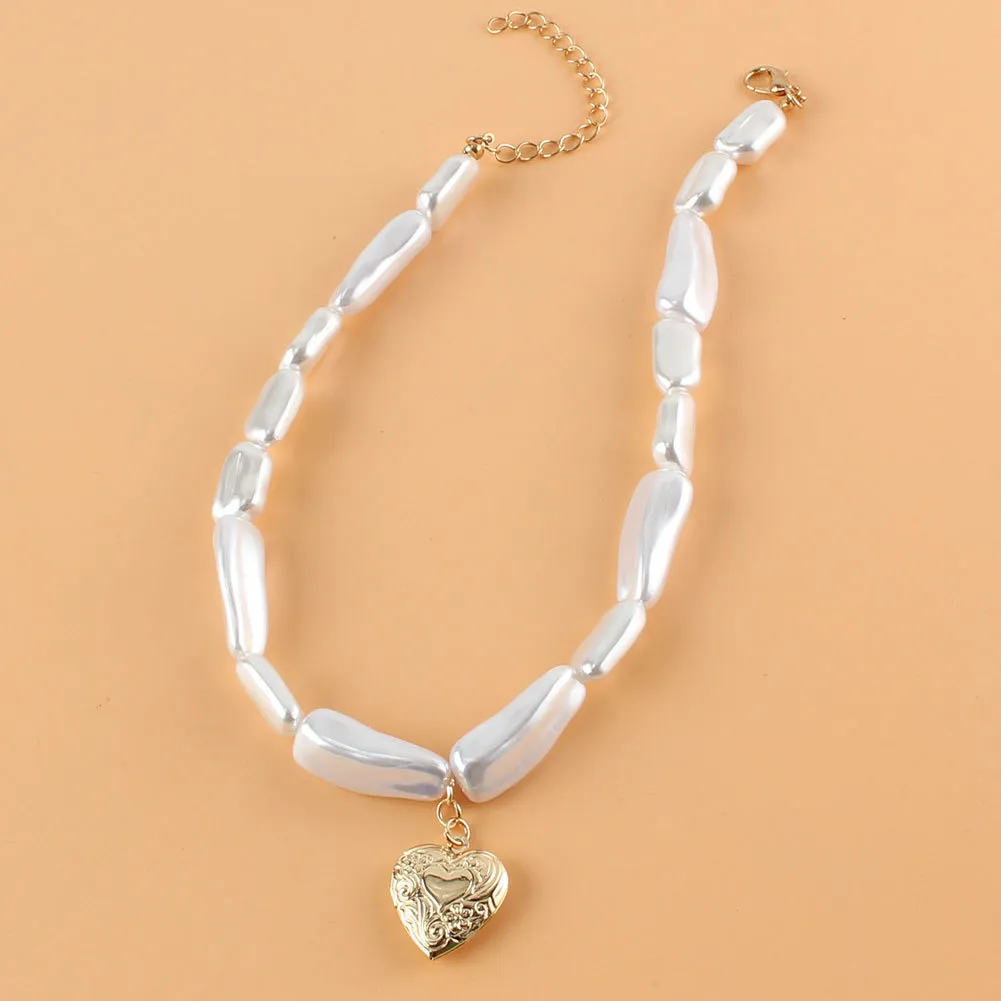 Alloy Love Pendant Pearl Necklace