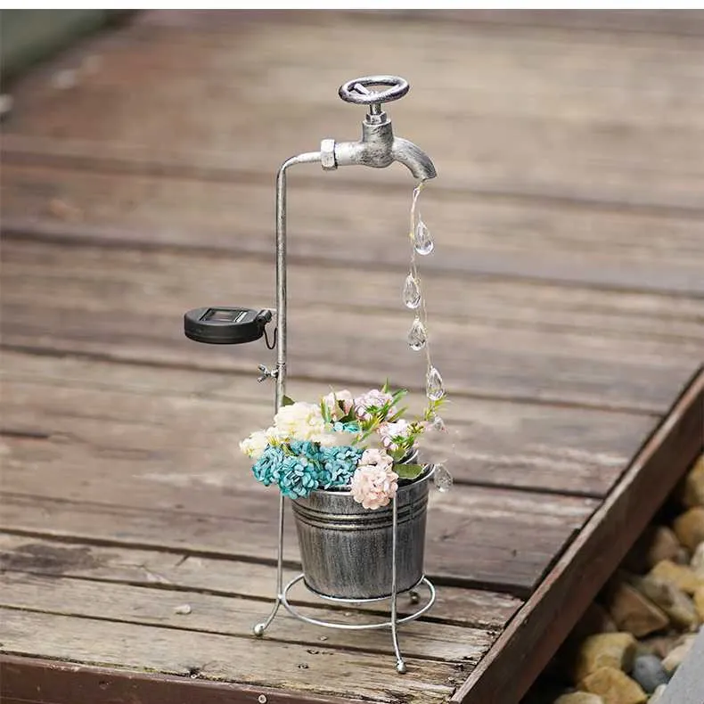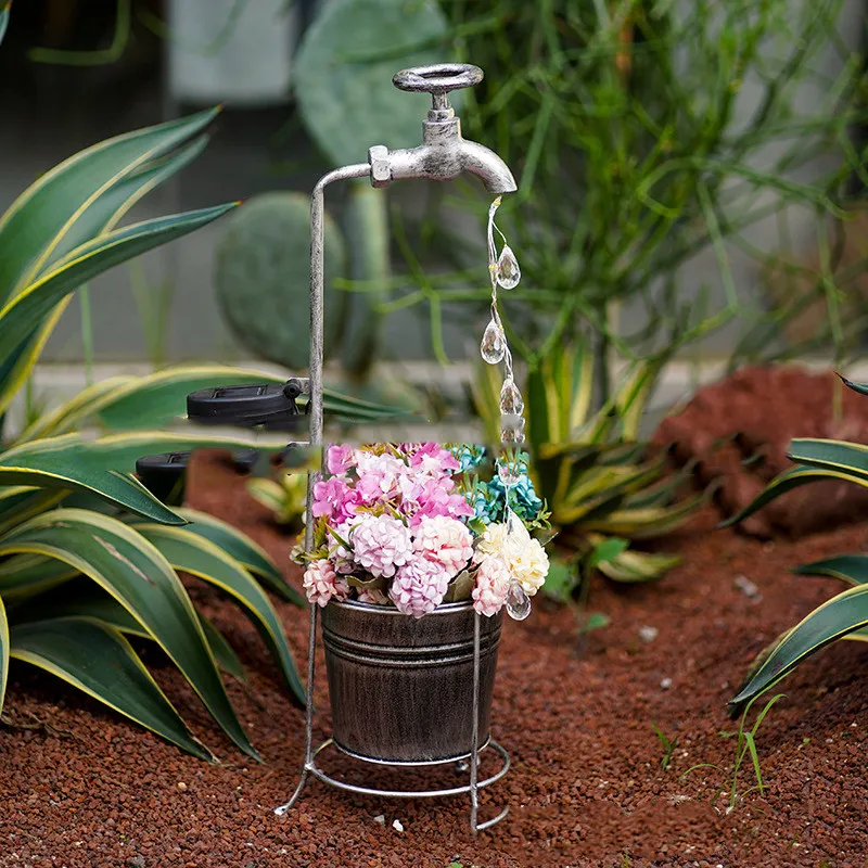 Amazon Solar Iron Water Drop Water Outdoor Landscape Lamp Garden New Faucet Iron Decorative Lamp