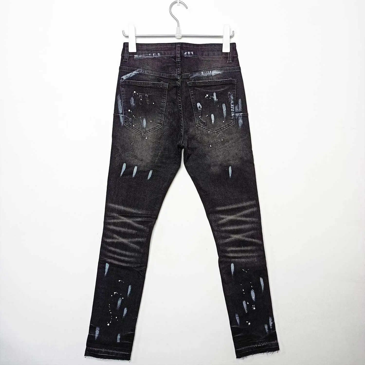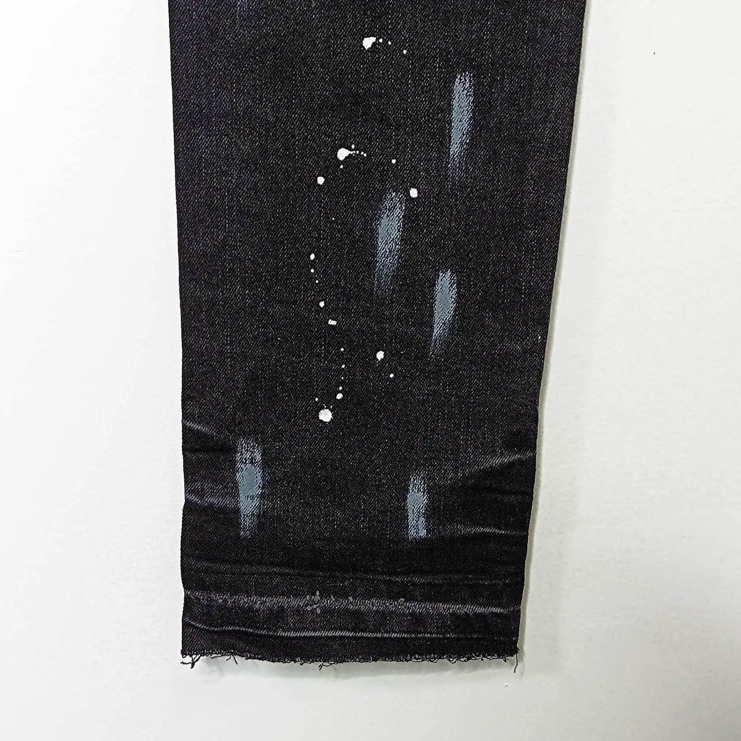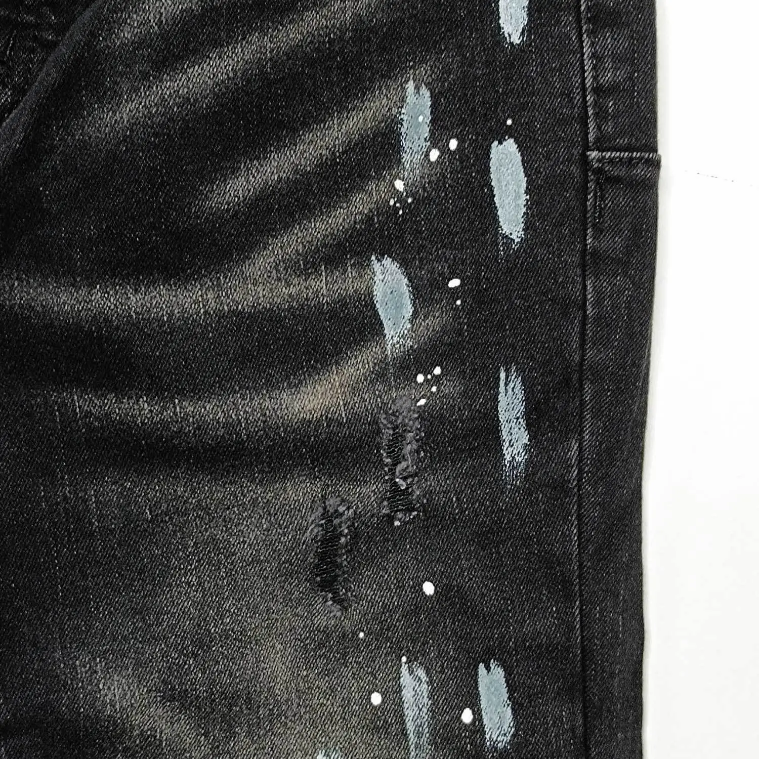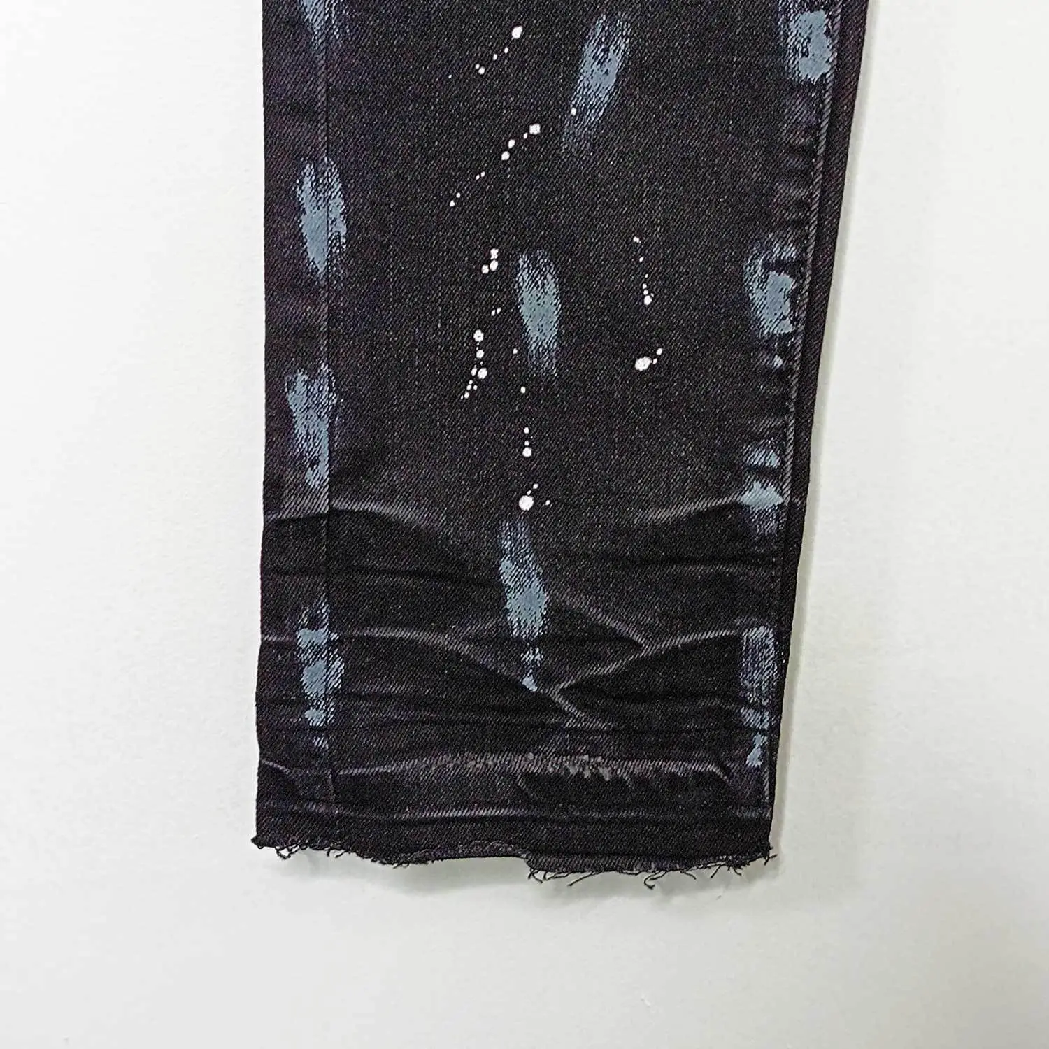 Additionally, the paint splash and ripped details are carefully crafted to enhance the aesthetic of the jeans without compromising their durability, ensuring that they continue to look great after multiple washes.