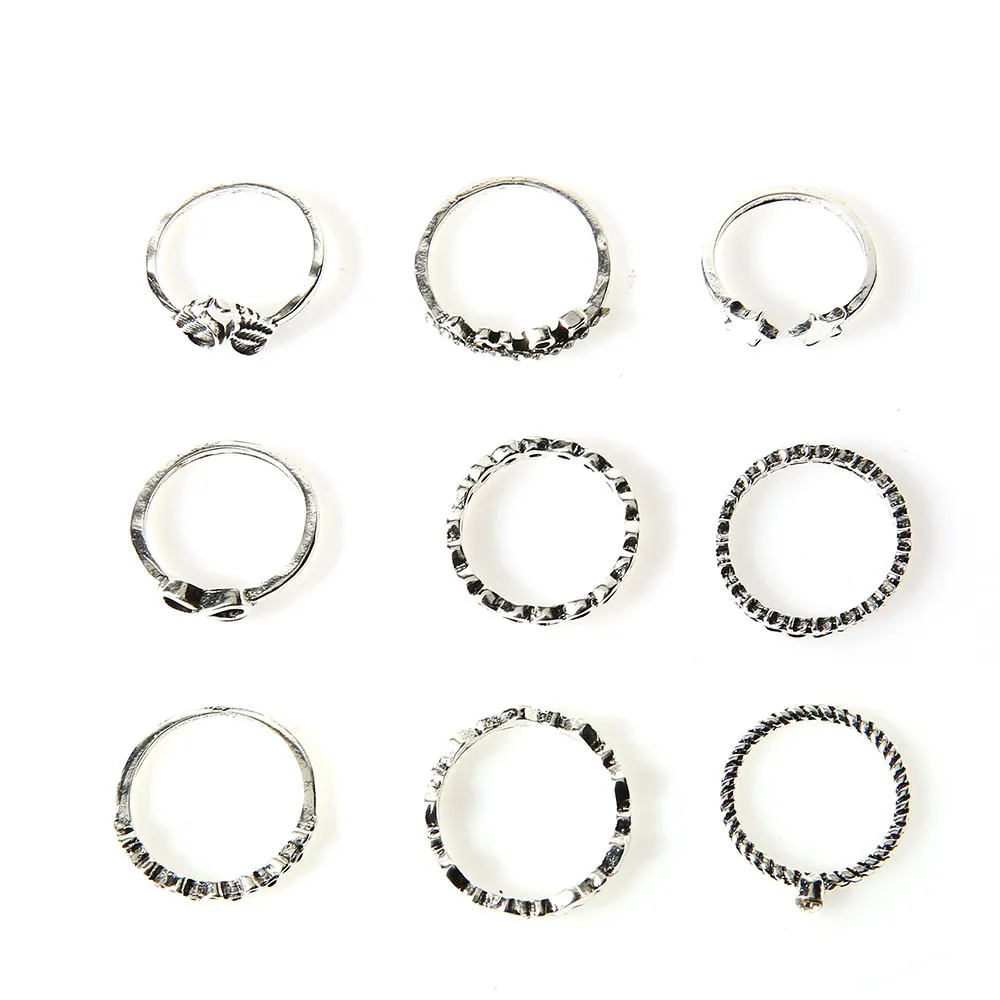 Ancient Silver Wings Five-pointed Star Heart-shaped Cupid AMOR Set Ring