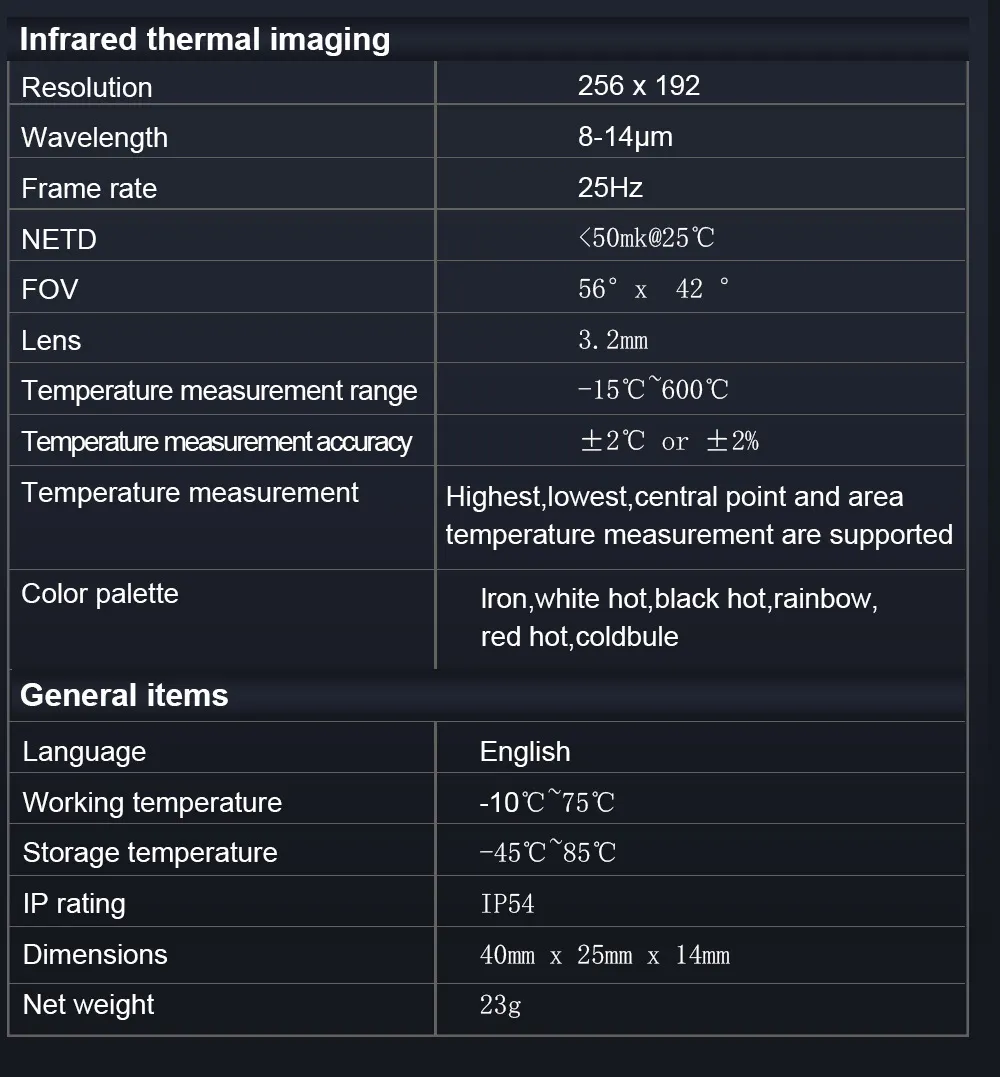 - App Compatibility: Works with apps like FLIR One, Seek Thermal, or specialized apps from the manufacturer.