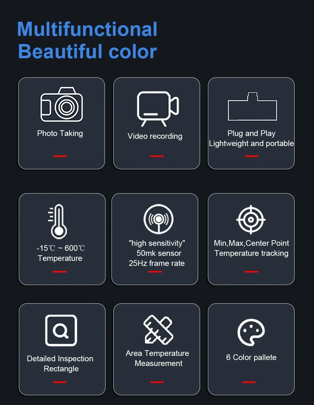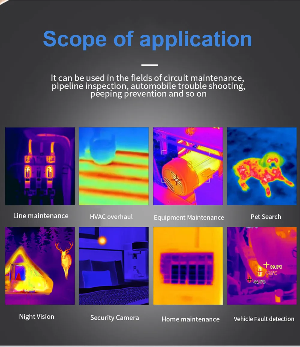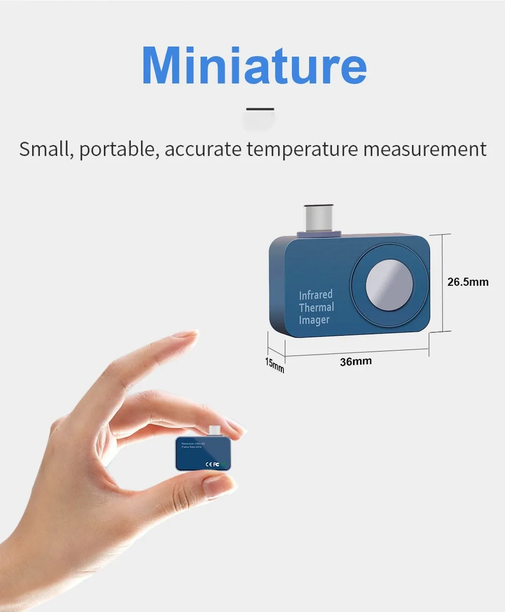 An Android plug-in thermal imaging camera is a small device that connects directly to the USB-C port of your phone, transforming it into an infrared temperature measuring tool. It's ideal for a variety of uses such as home inspections, HVAC maintenance, electrical repairs, and even vlogging with thermal visual effects.