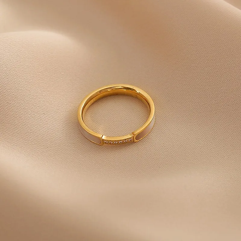 ANENJERY 316L Stainless Steel Zircon Shell Ring for Women