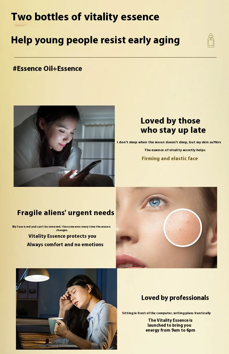 Formulated with a blend of potent botanical extracts, essential oils, and hydrating agents, this essence oil works by penetrating deep into the skin to restore moisture balance, enhance elasticity, and improve overall skin texture. Whether you are dealing with early signs of aging or looking for a reliable skincare solution for mature skin, this product provides visible results over time. Its lightweight formula makes it suitable for all skin types, providing nourishment without feeling greasy or heavy.