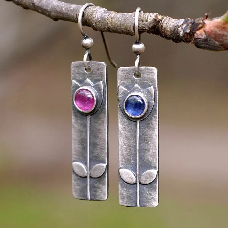 Antique Finish Red Sapphire Earrings – Vintage Elegance with Timeless Charm