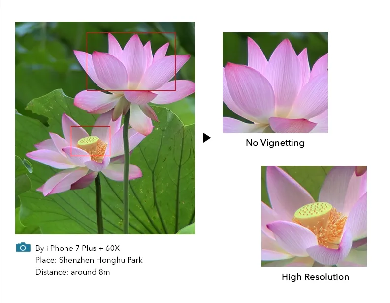 The APEXEL lens boasts a powerful 20-40X zoom capability, allowing you to capture subjects from 20 meters to several kilometers away. This versatility makes it suitable for various applications, from bird watching to stargazing.