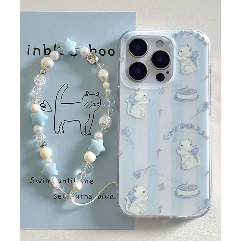 Applicable Mobile Phone Blue And White Striped Cat Lanyard Protective Cover