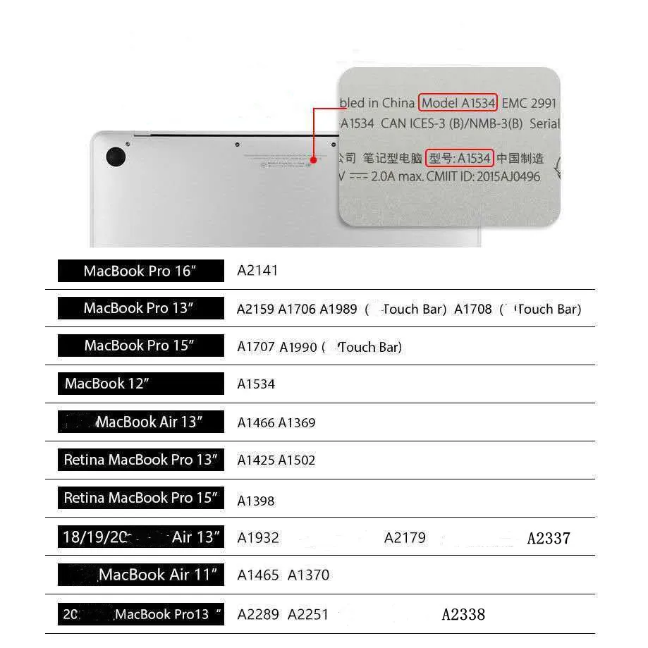 Applicable models: A1932 / A2179 / A2337 A1706 / A1708 / A1989 / A2159, A1707 / A1990, A1369 / A1466, A1370 / A1465, A1534, A1425 / A1502, A1398, A2141, A2251 / A2289 / A2338
