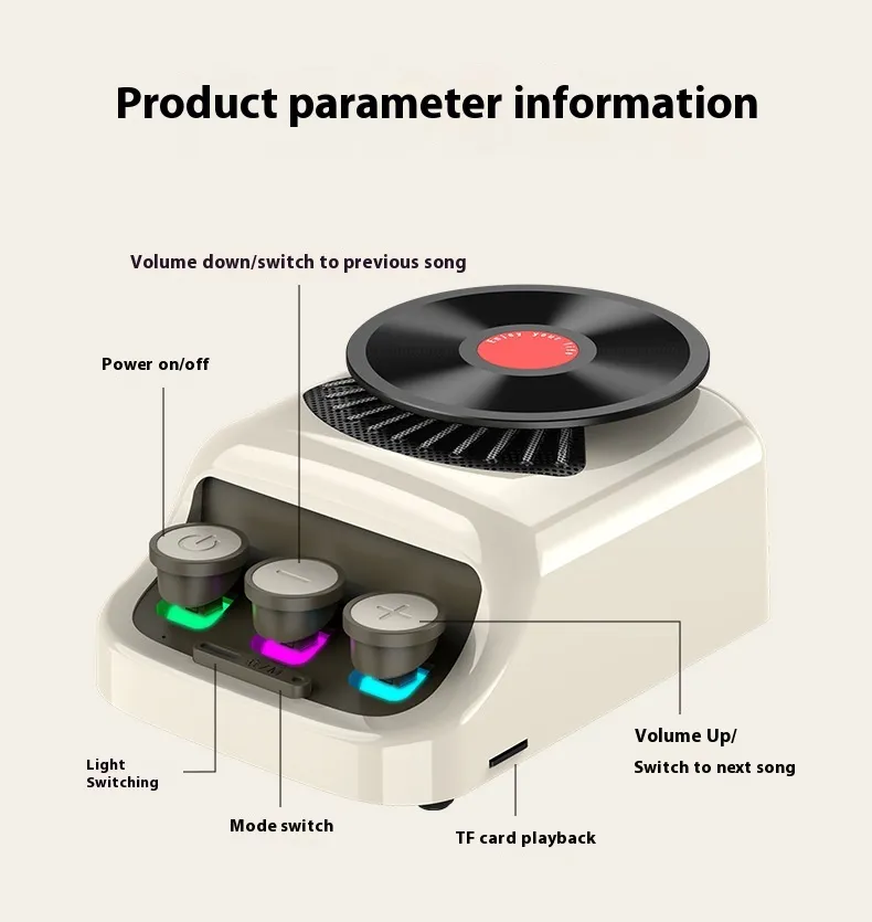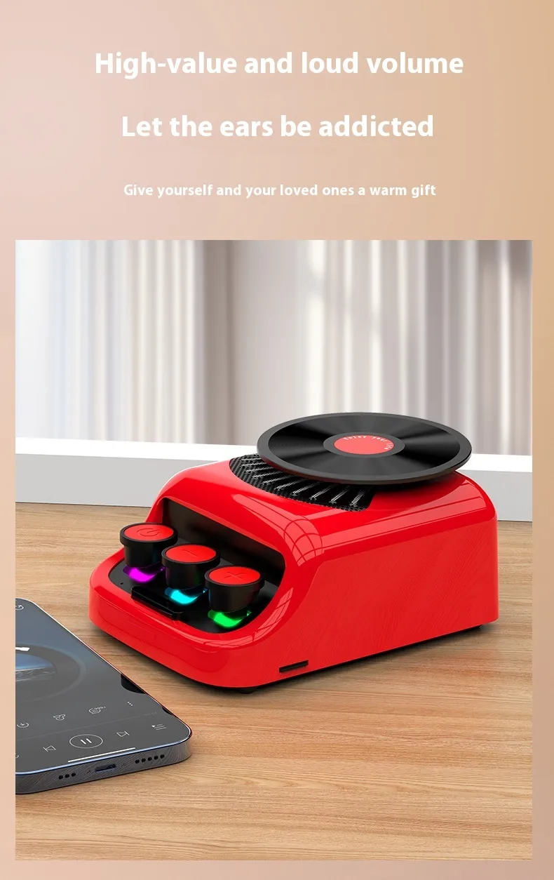 1. Appearance design: Retro style blends classic retro elements. Nostalgic disc shape. Small size, easy to carry and place.