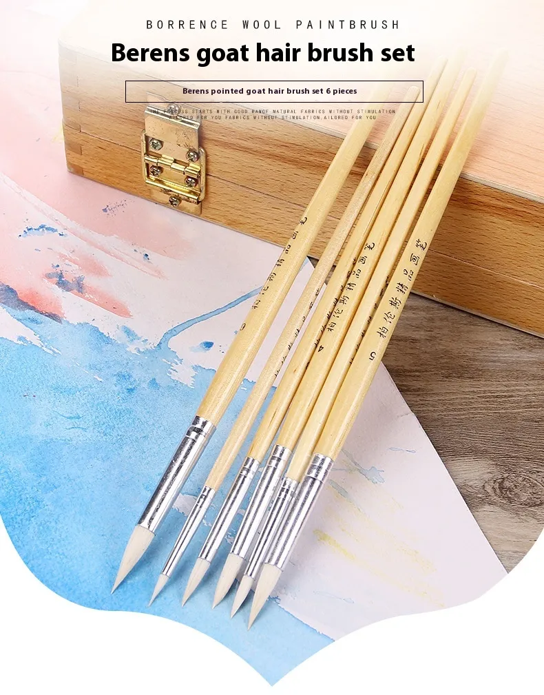 Artistic Wool Pointed Wooden Hook Line Pen Brush Suit
