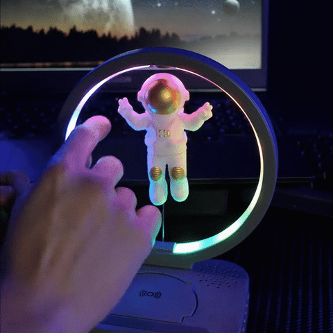 Experience futuristic sound quality with the USB magnetic levitation Bluetooth speaker – Astronaut Edition! This multifunctional speaker integrats a speaker, lamp, and wireless charger.