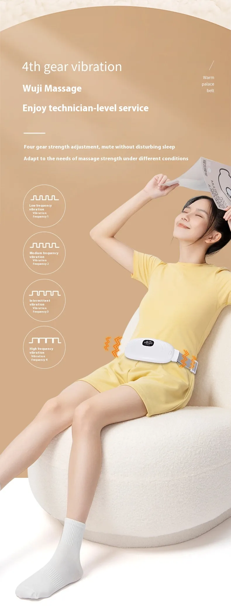 The primary benefit of the Aunt Artifact Warm Uterine Cold Belt is its ability to relieve menstrual pain. By providing consistent and adjustable heat, it reduces cramping and discomfort, allowing you to go about your day without the constant worry of menstrual pain.
