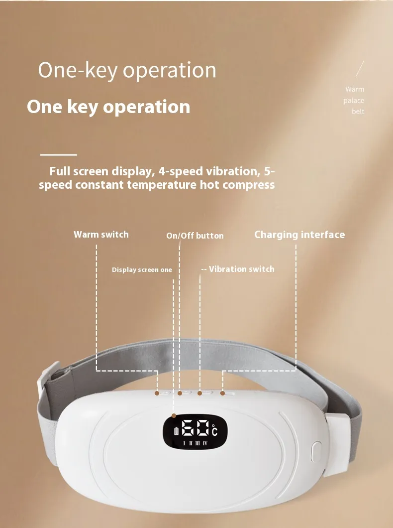 The belt utilizes adjustable thermal heating, which helps to soothe menstrual cramps by improving blood circulation in the lower abdominal and uterine areas. The heat relieves tension and reduces discomfort, providing immediate pain relief.