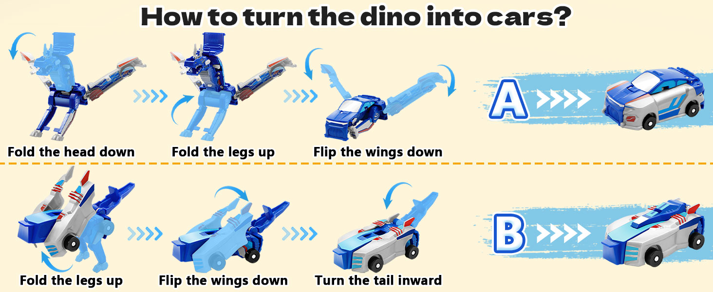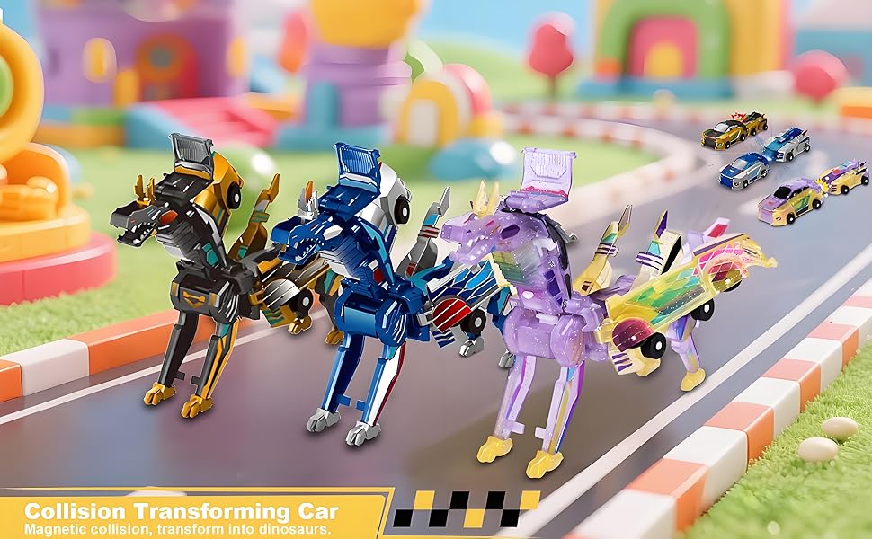 - Magical Dinosaur Transformation Watch the amazing collision as cars transform into dinosaurs, combining two favorites in one toy for an exciting and unique playtime.