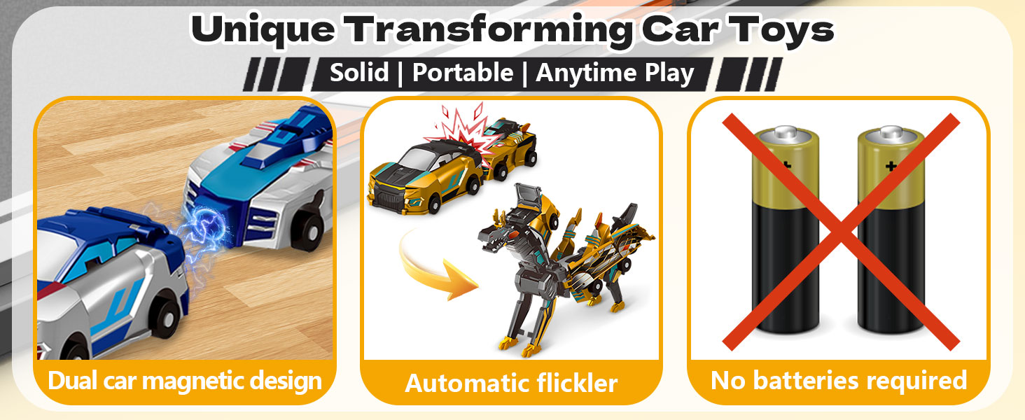 Instant Automatic Transformation: No buttons or battery power needed! Simply race the car and experience the thrilling automatic