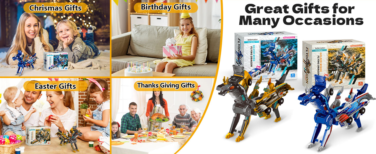 - 【Perfect Gift for Kids】: With its unique magnetic transformation and eye-catching dino toy design, this robot toy makes an unforgettable gift for birthdays, Christmas, holidays, or as a party favor. Suitable for boys and girls ages 2-4, 3-5, and 5-7, 8-12. An great holiday gift for boys and girls who love cars and dinosaurs