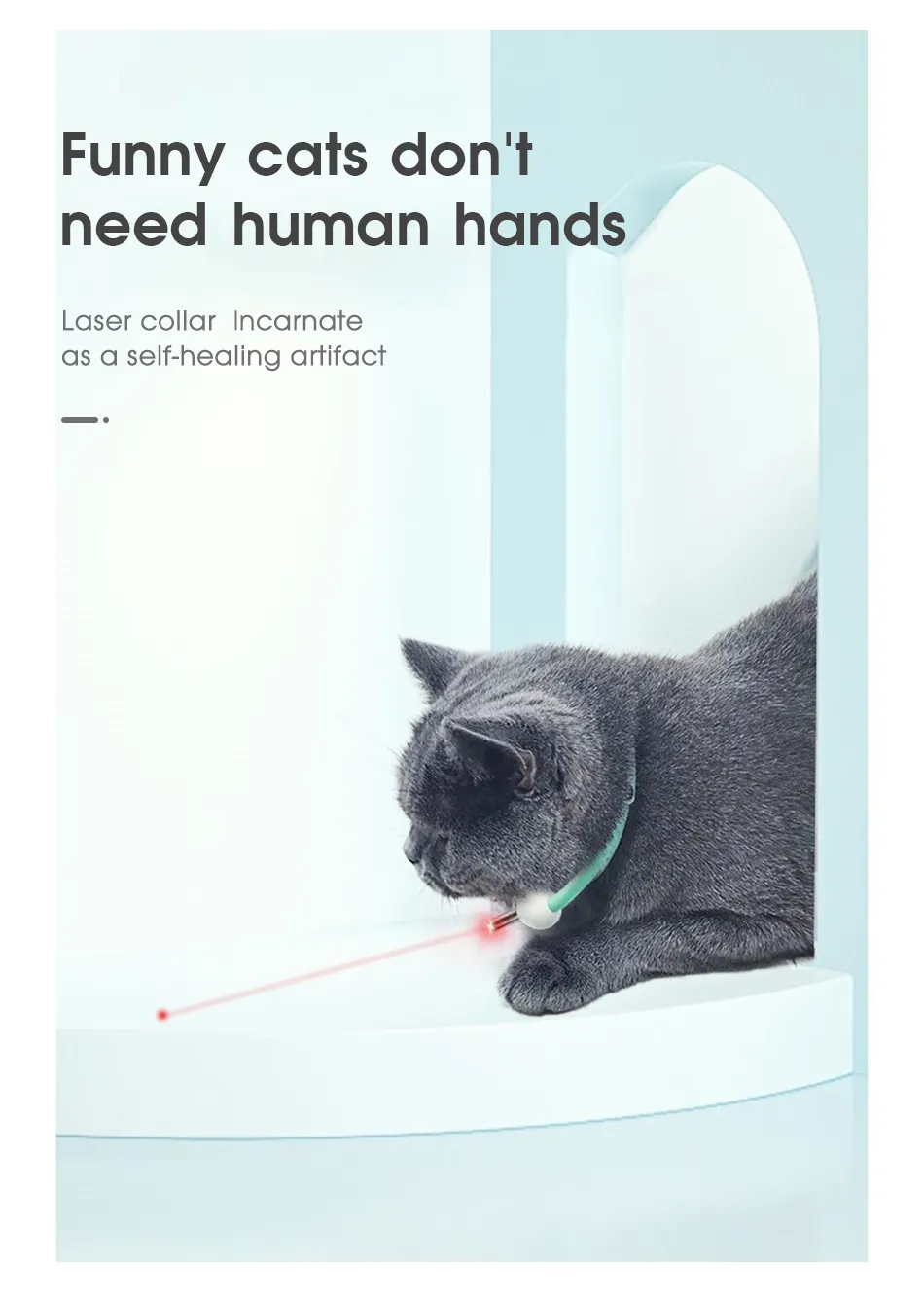 The ray of light is integrated into the collar to keep the ray point in front of cats at all times, whether they're jumping or running. Cats