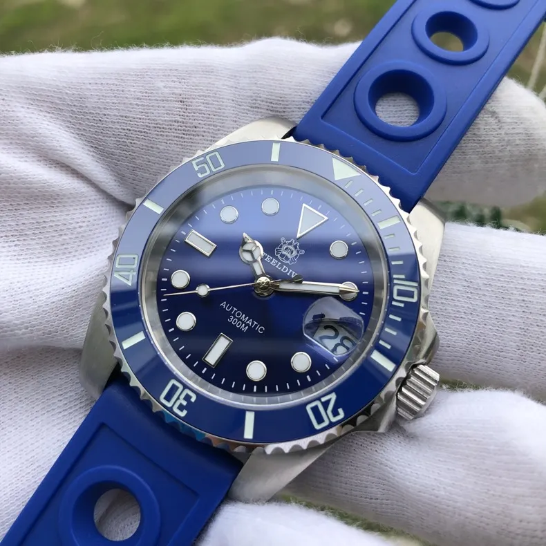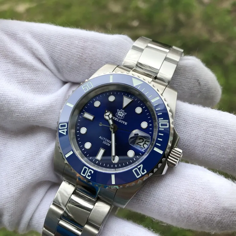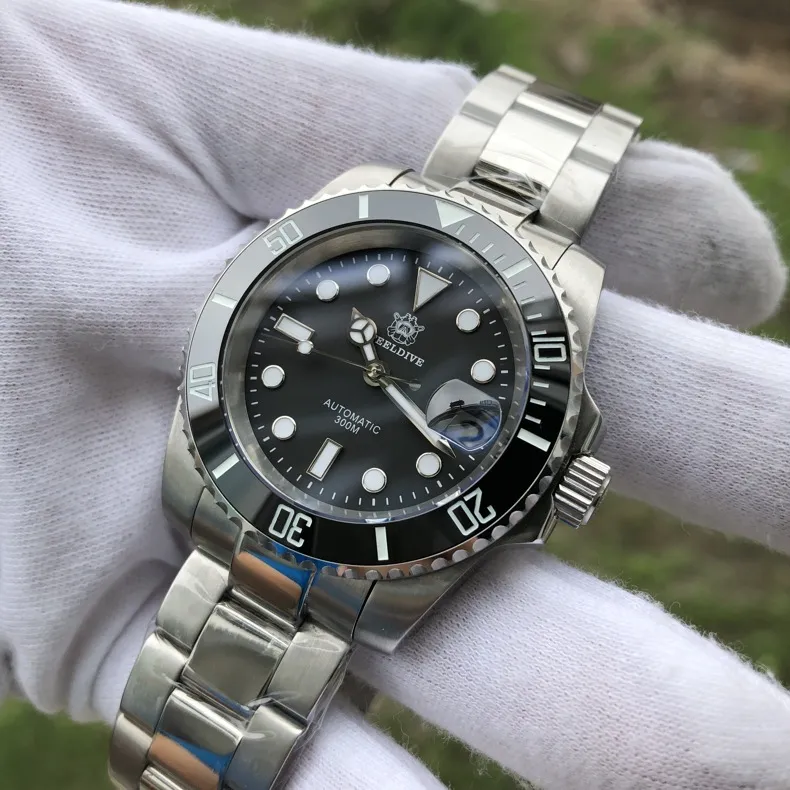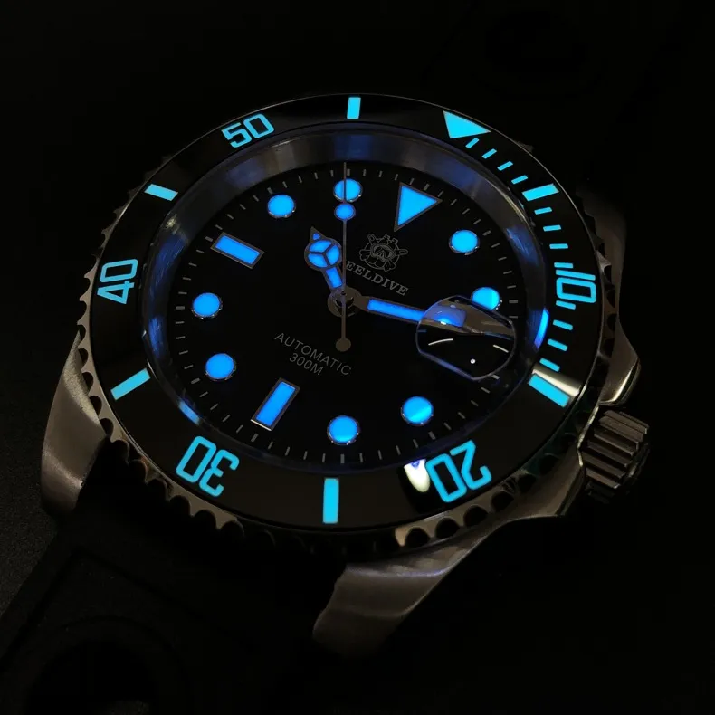 A: Black dial 316L stainless steel strap, Swiss BGW9 blue and black luminous dial,