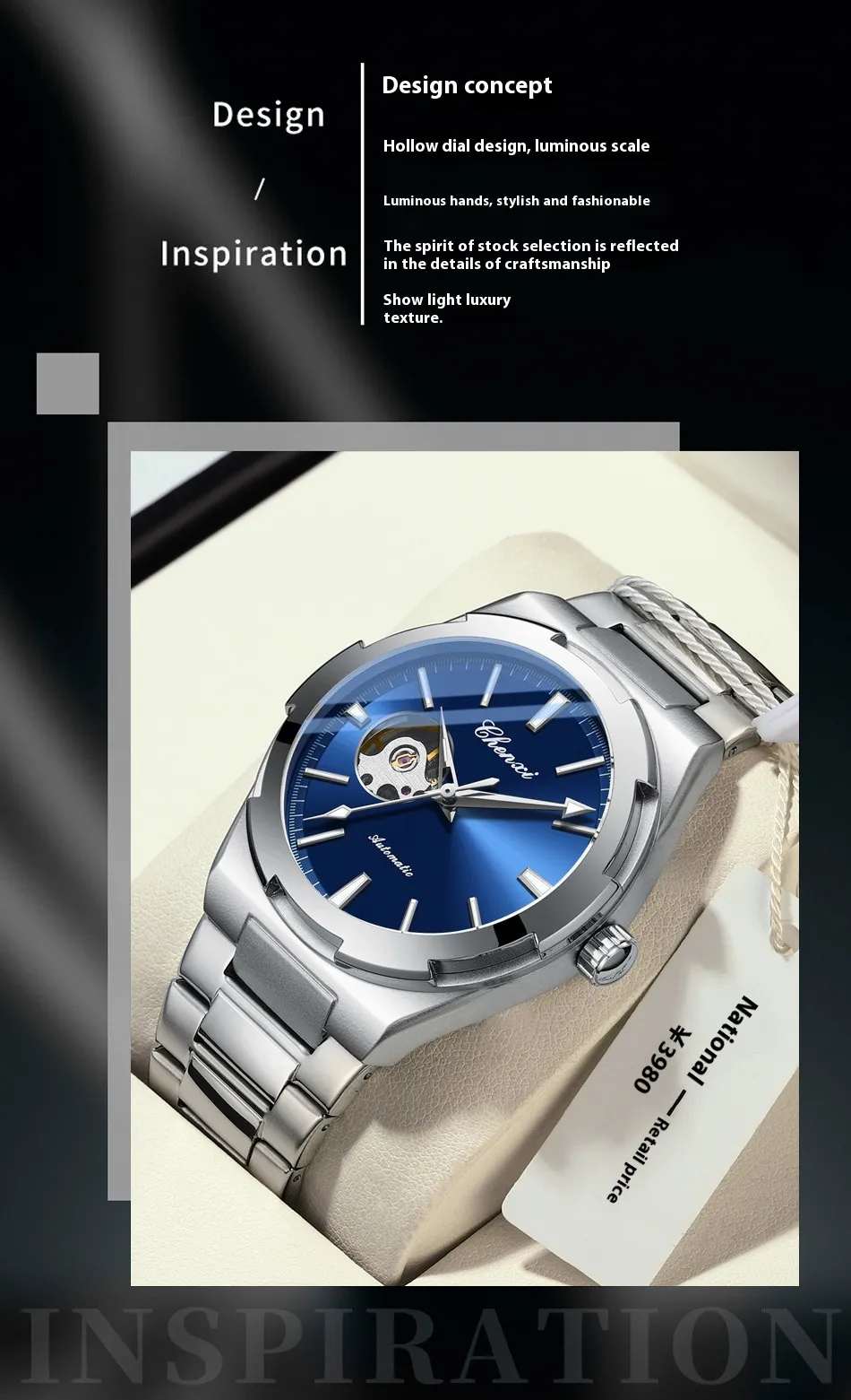 An automatic mechanical watch is more than a timepiece; it's a statement of style, precision, and craftsmanship. Perfect for the modern individual who values elegance and timeless design, this watch is a must-have accessory for any occasion. With its intricate mechanics, trendy design, and durable build, it stands as a testament to the beauty of functional artistry.