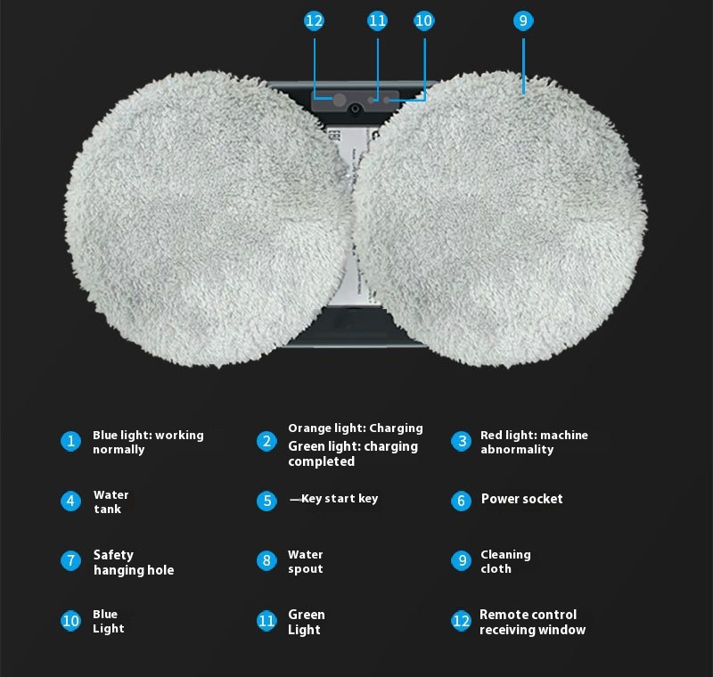 Host * 1 power adapter (including 4-meter extension cable) * 1 Power plug * 1 safety rope * 1 remote control * 1 Spray bottle * 1 cloth * 10 cleaning ring * 4